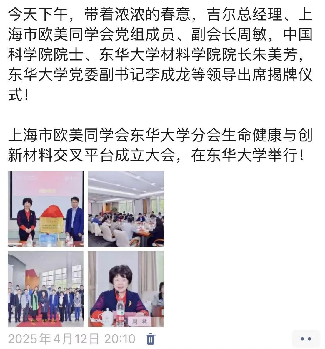 吉尔周敏出席 上海市欧美同学会东华分会交叉平台成立揭牌