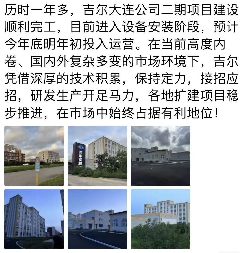 吉尔大连二期项目进入设备安装 扩产稳步推进
