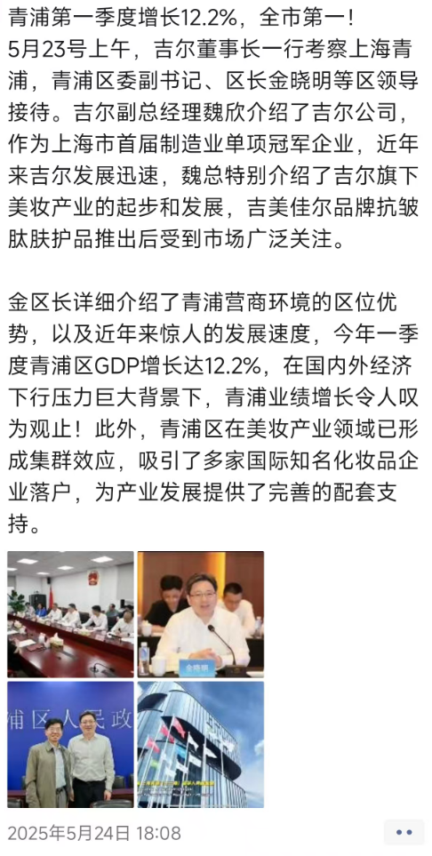 2025年吉尔大事锦集(亲清政商关系版)--上海青浦区委副书记、区长金晓明等领导接待吉尔董事长一行考察青浦