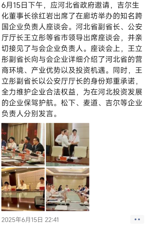 2025年吉尔大事锦集(亲清政商关系版)--河北省副省长、公安厅长王立彤接见吉尔生化董事长