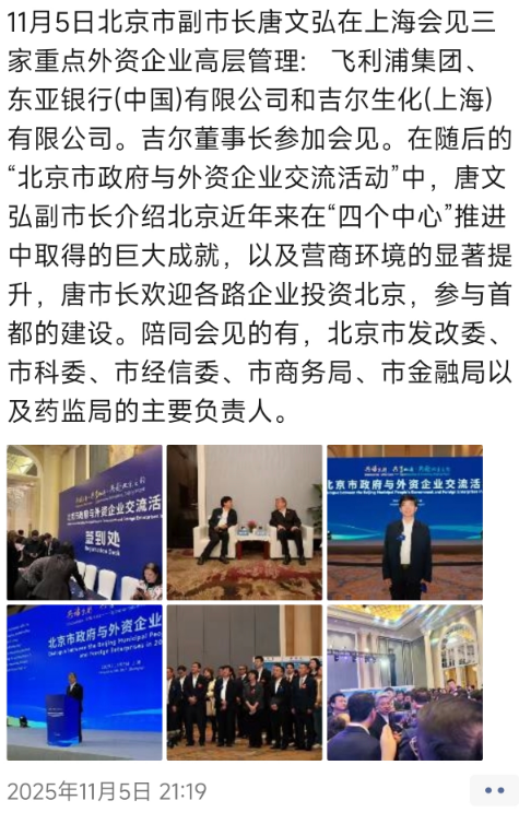 2025年吉尔大事锦集(亲清政商关系版)--北京副市长唐文弘上海会见重点外资企业,吉尔董事长参加会见